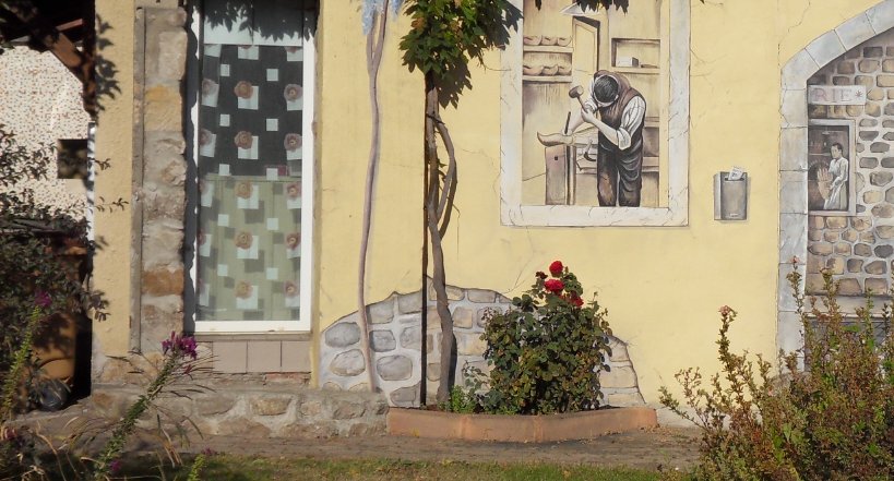 Visages et routes se croisent sur d'autres façades, les souvenirs
